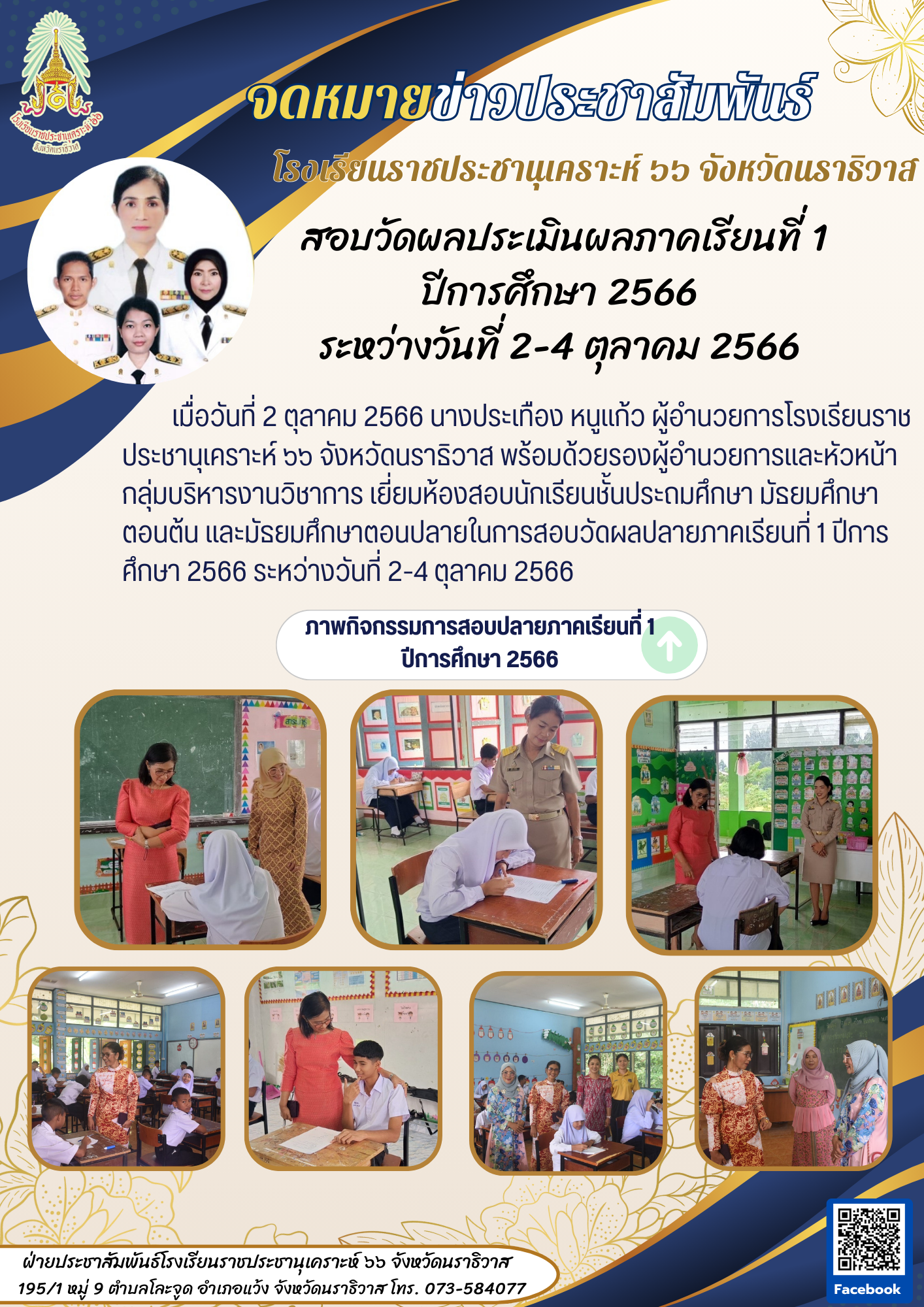 สอบวัดผลประเมินผลภาคเรียนที่ 1 ปีการศึกษา 2566 ระหว่างวันที่ 2-4 ตุลาคม 2566