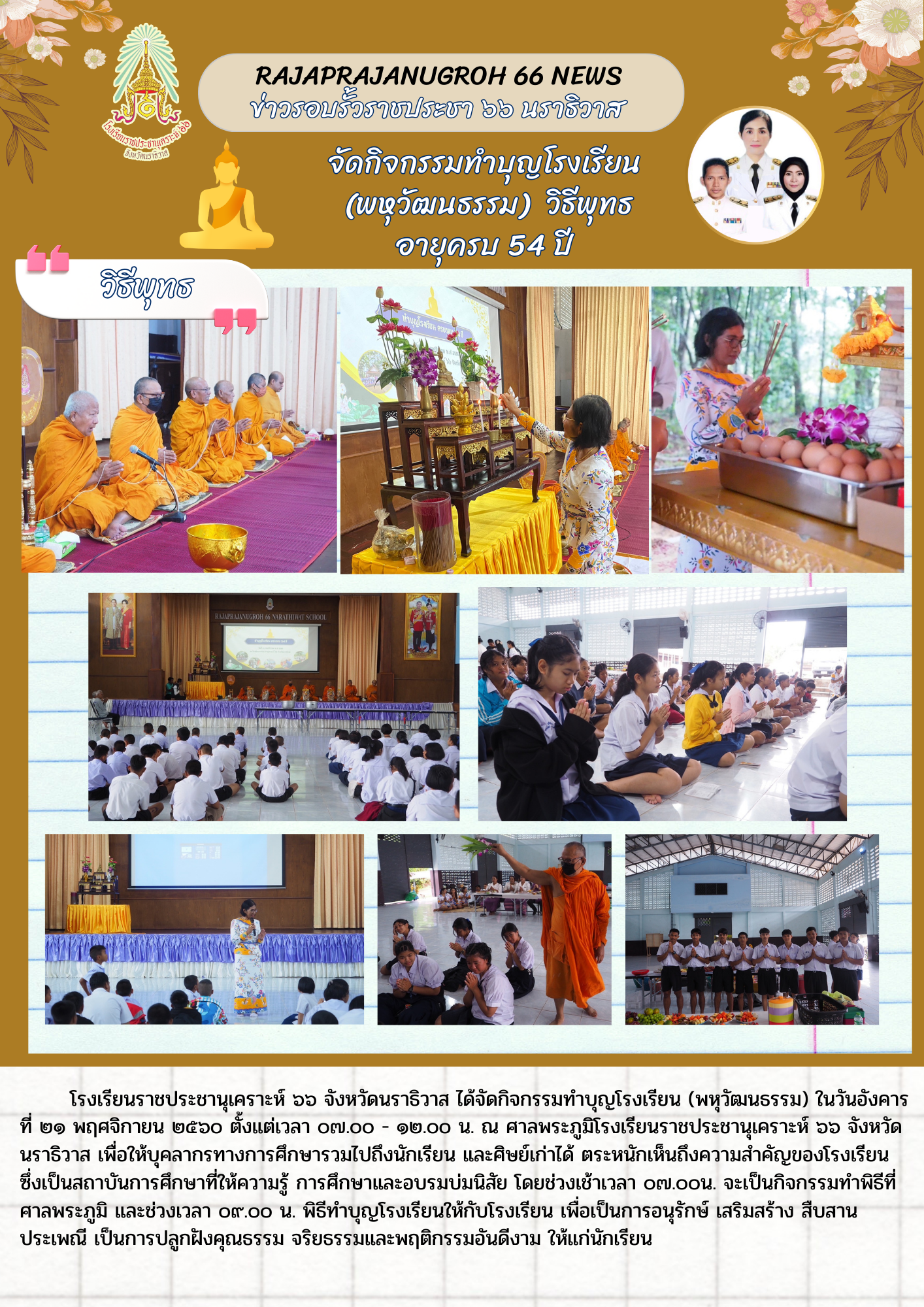 จัดกิจกรรมทำบุญโรงเรียน (พหุวัฒนธรรม) วิธีพุทธ อายุครบ 54 ปี