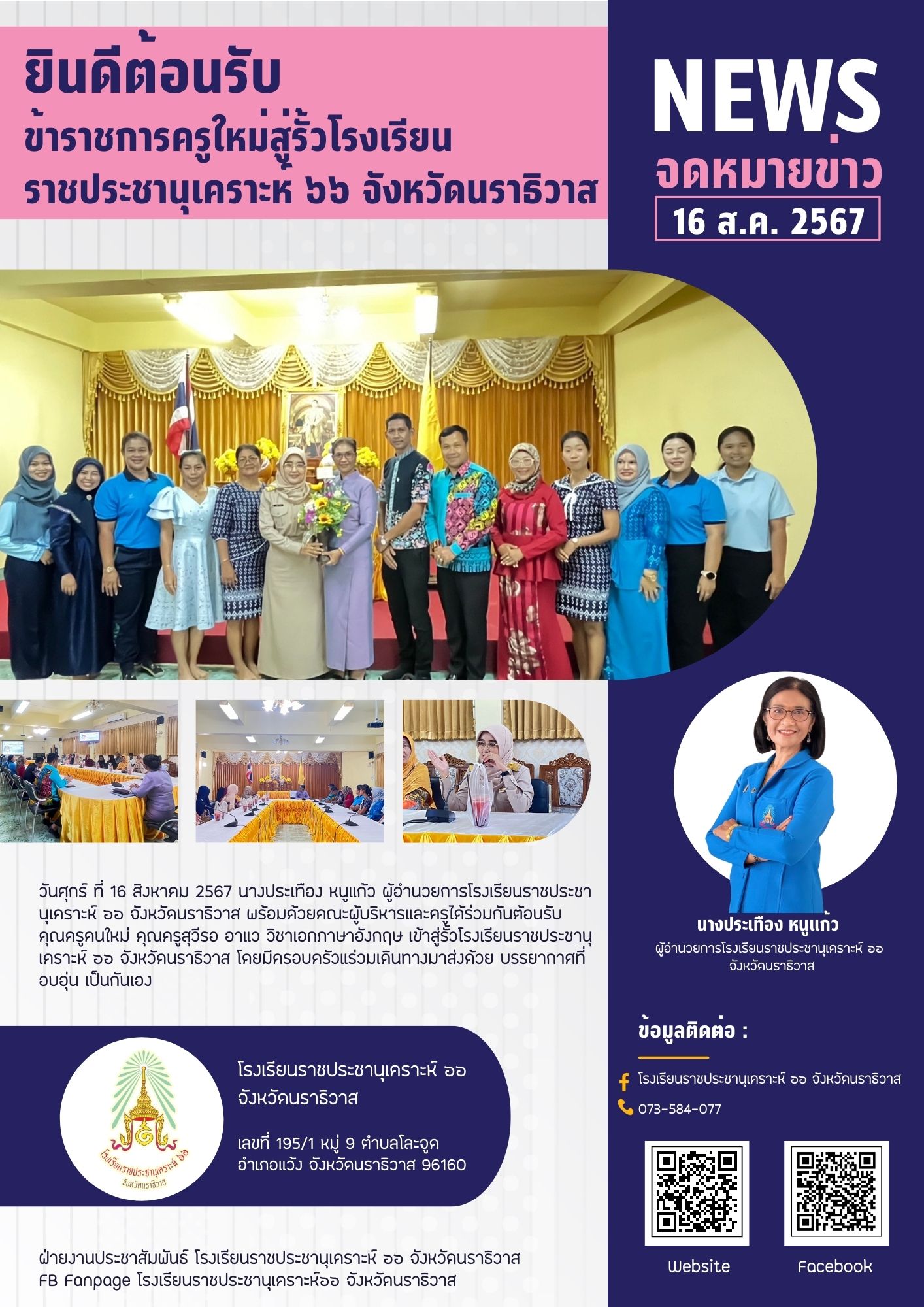 โรงเรียนราชประชานุเคราะห์ ๖๖ จังหวัดนราธิวาส 195/1 หมู่ 9 ต.โละจูด อ.แว้ง จ.นราธิวาส 96160