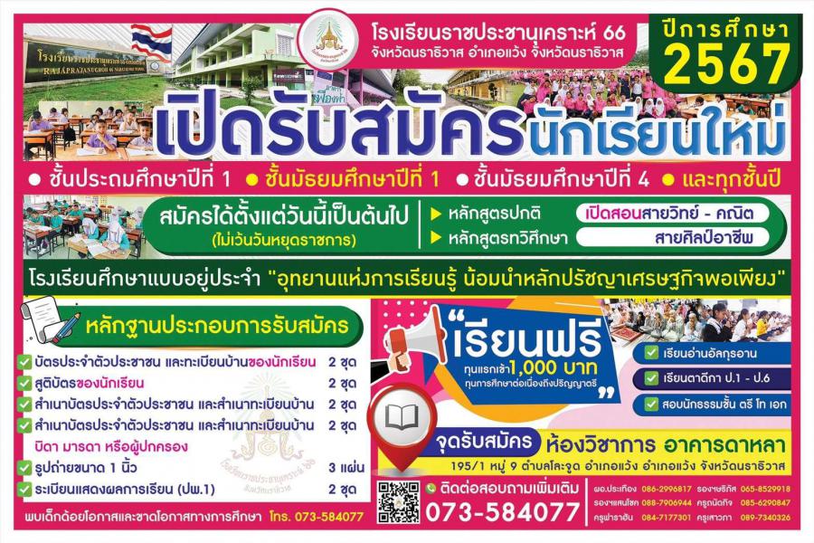 เปิดรับสมัครแล้วนะคะ อย่าลืมชวนกันมาเรียน ณ โรงเรียนราชประชานุเคราะห์ ๖๖ จังหวัดนราธิวาส
